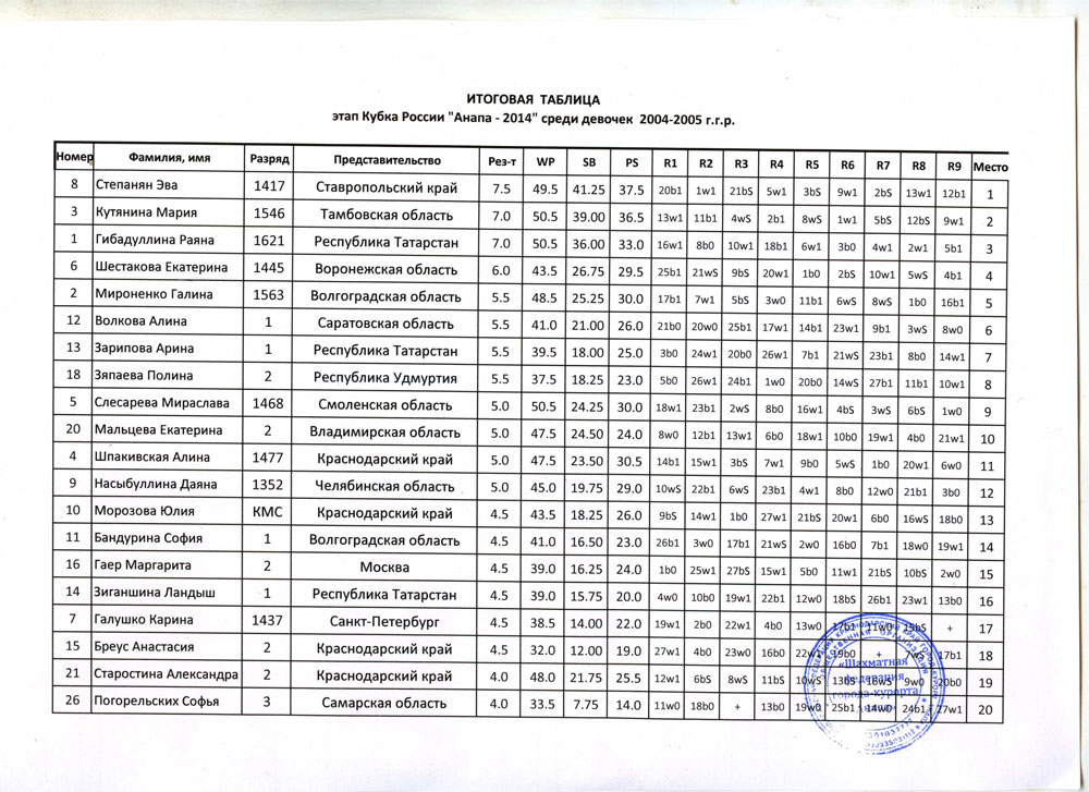 Турнир А2 (Девочки)