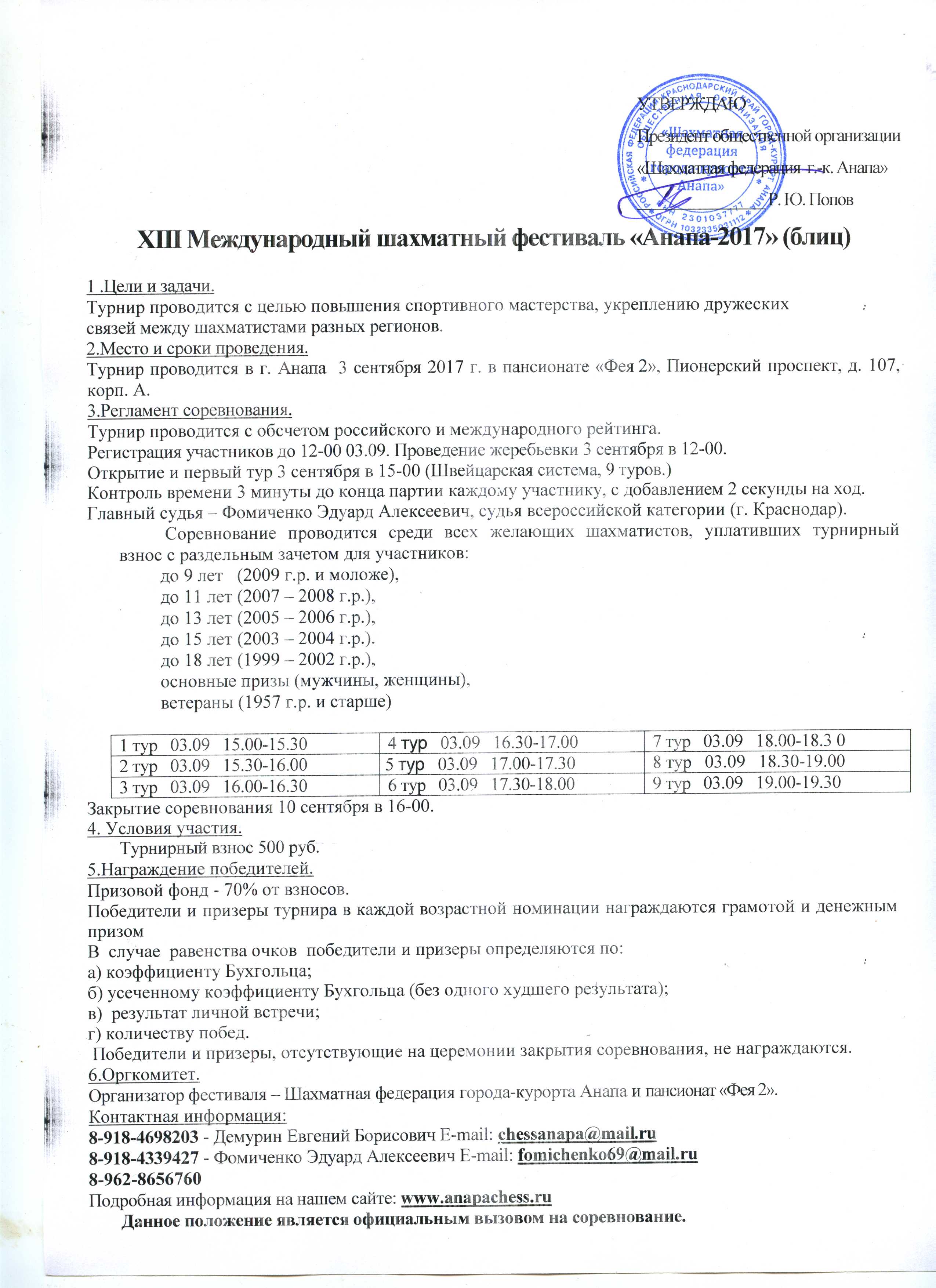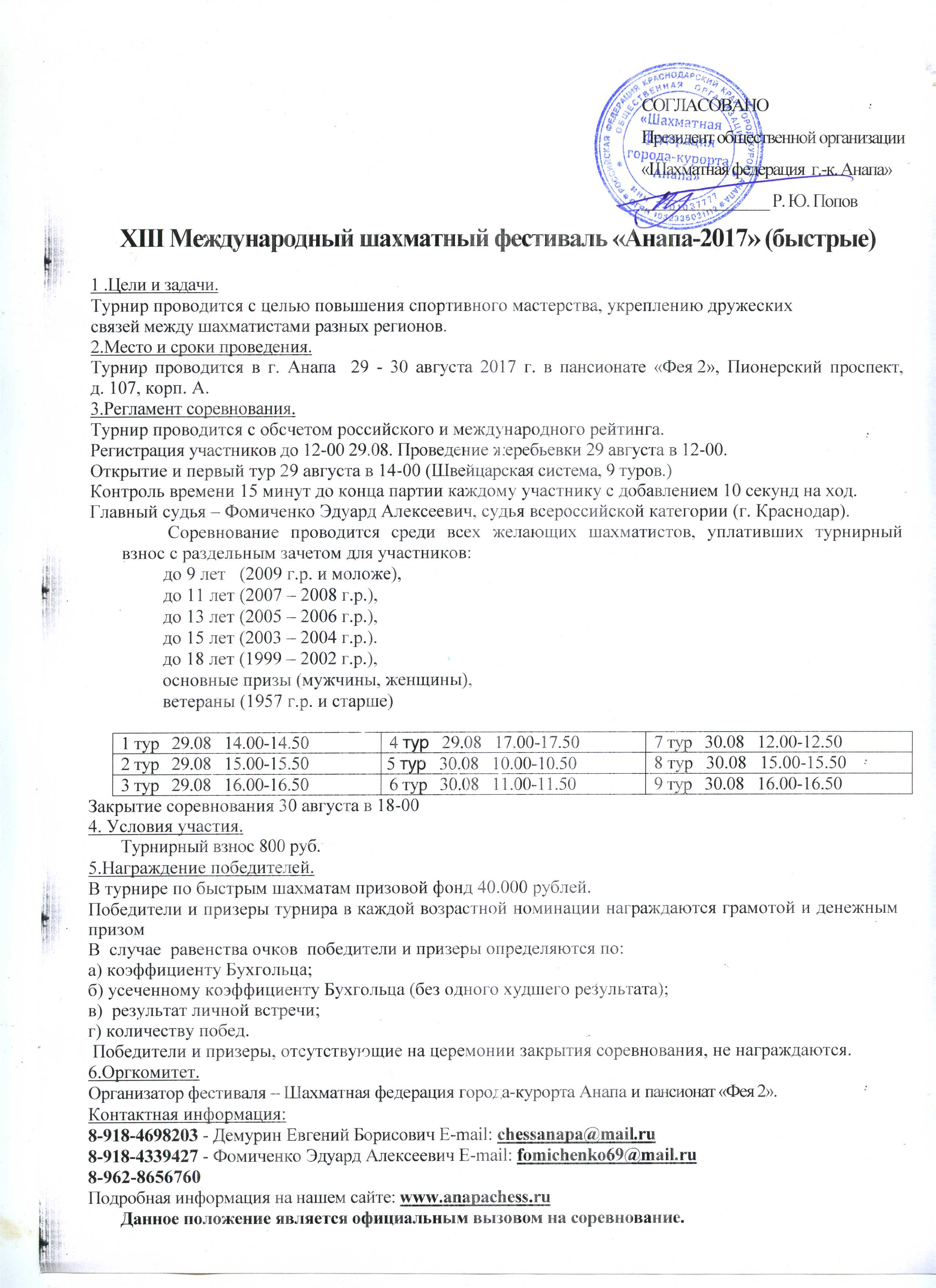 Шахматный фестиваль в Анапе. Шахматный турнир в Анапе.